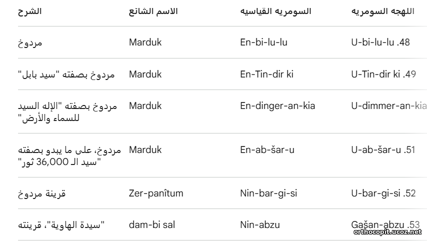 السطر 42: Mulu-hursag (Galu-hursag) - أمورو: الإله الأموري.